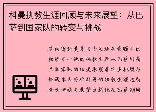 科曼执教生涯回顾与未来展望:从巴萨到国家队的转变与挑战